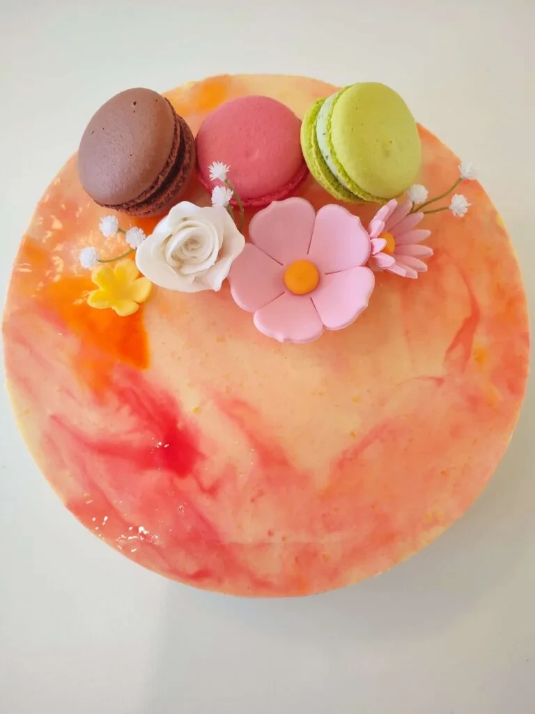 Le Séraphine : Mousse passion, mousse vanille, biscuit coco, sirop passoa.