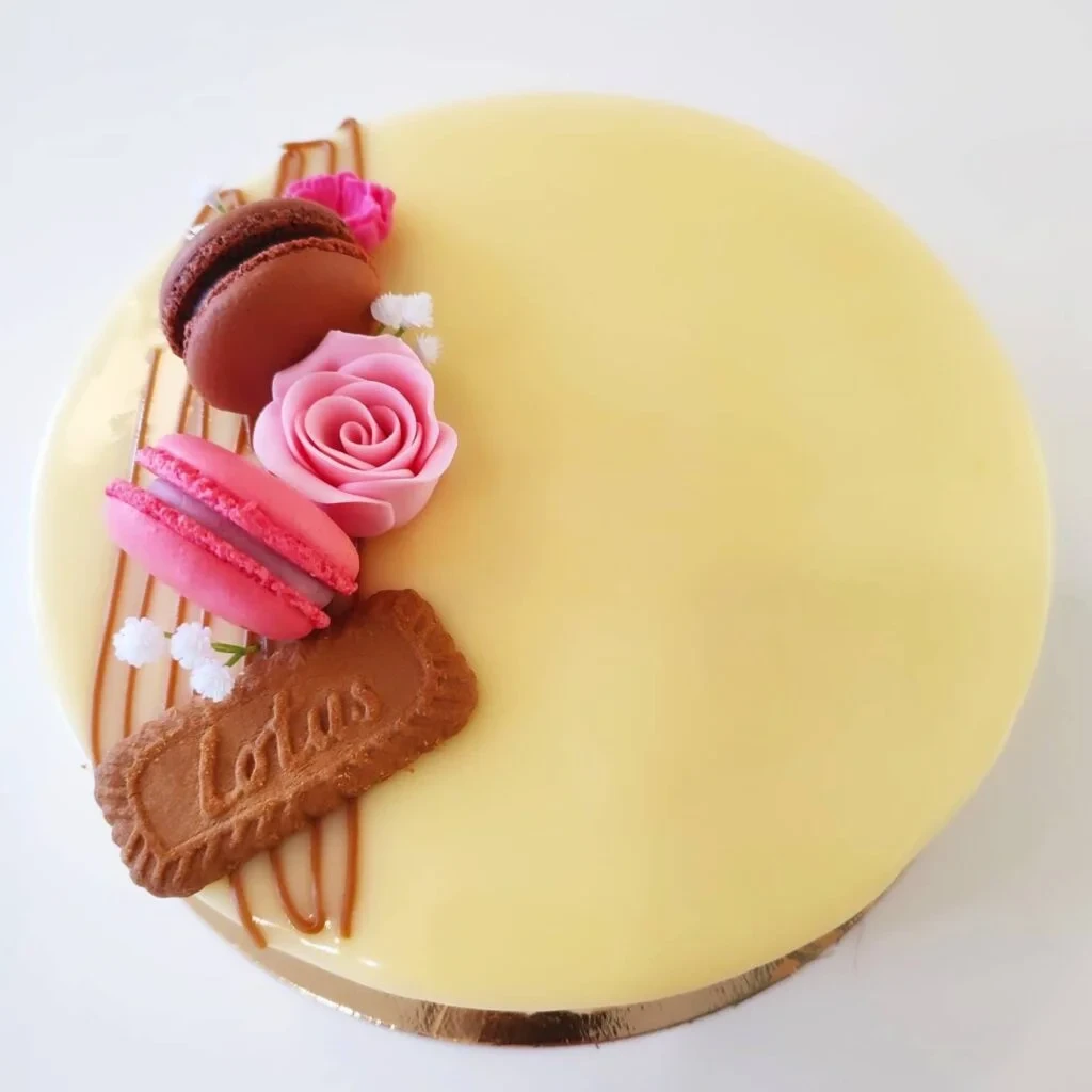 Biscuit madeleine, crémeux caramel, craquant speculoos mousse vanille