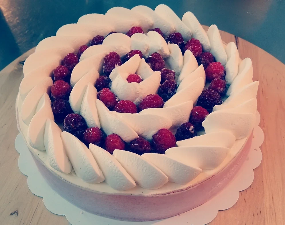 Le Fraisier: Génoise, crème mousseline, fraises.