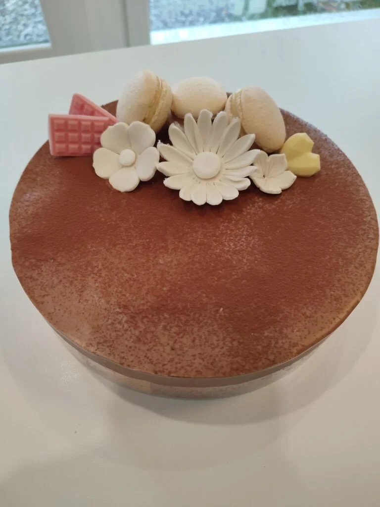 Mousses bavaroises aux trois chocolats, biscuit moelleux au chocolat.