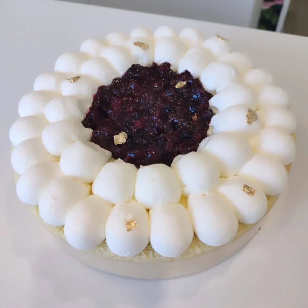 Mousse au fromage blanc, biscuit cuillère, insert fruits des bois.